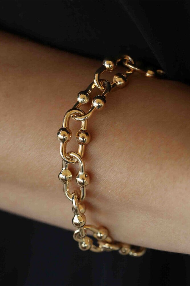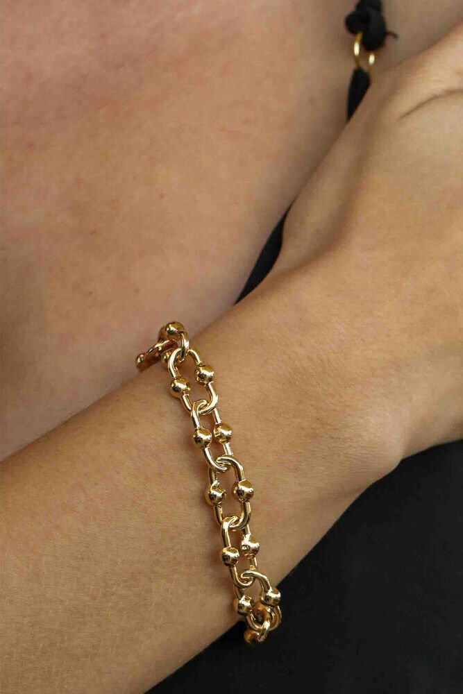 Yumuşak geçişlerle birbirine bağlanan yuvarlak uçlu halkalar, Dotline bilekliğe zarif bir ritim kazandırıyor. 14 ayar sarı altından tasarlanan bu özel model, 9.33 gram ağırlığındadır. Sade şıklığı küçük detaylarla öne çıkaran tasarımıyla, her anınıza ince bir ışıltı eşlik eder.