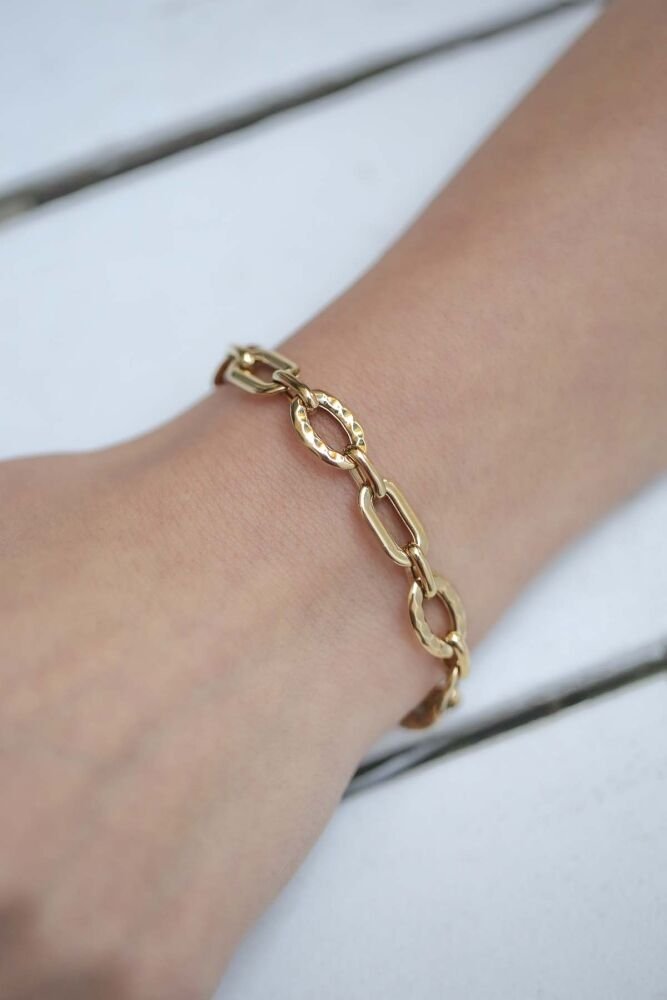 7,74 gram 14 ayar altınla tasarlanan Erisma Bileklik, güçlü zincir halkalarının modern yorumu ile şıklığı ve zarafeti buluşturur. Hem günlük kullanımda hem de özel davetlerde stilinizi öne çıkaracak zamansız bir tasarım sunar.