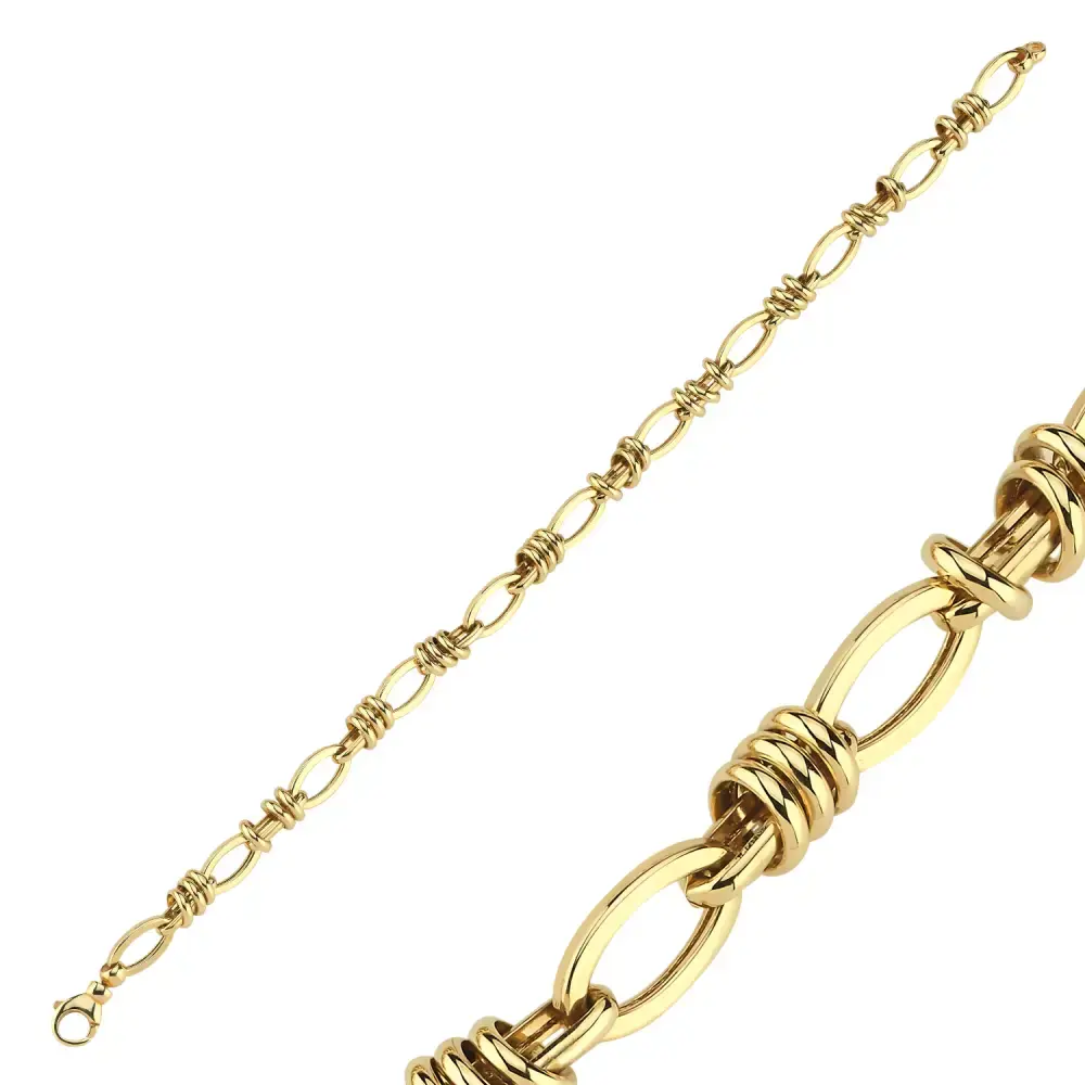 İnce formu ve özgün halkalarıyla Eterna Bileklik, 14 ayar sarı altınla hayat buldu. 4,77 gram ağırlığındaki bu zarif model, minimal tarzı sevenler için ideal bir tamamlayıcıdır.