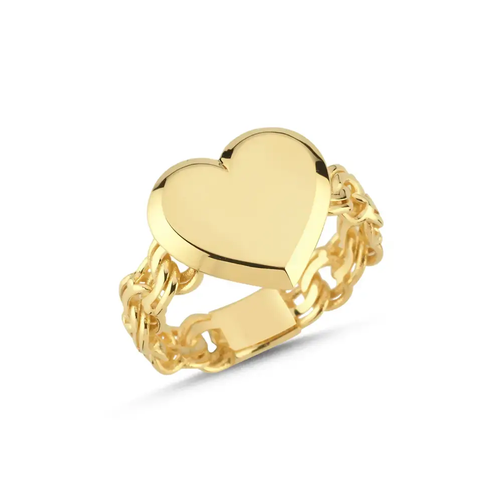 Aşkın ve zarafetin sembolü olan bu kalp yüzük, romantik ve dikkat çekici tarzı bir araya getiriyor. 14 ayar sarı altınla tasarlanan bu özel parça, 3.27 gram ağırlığındadır. Zincir detaylı şık yapısıyla her ortamda kendini gösterir, duygularınızı şıklıkla ifade etmenizi sağlar.