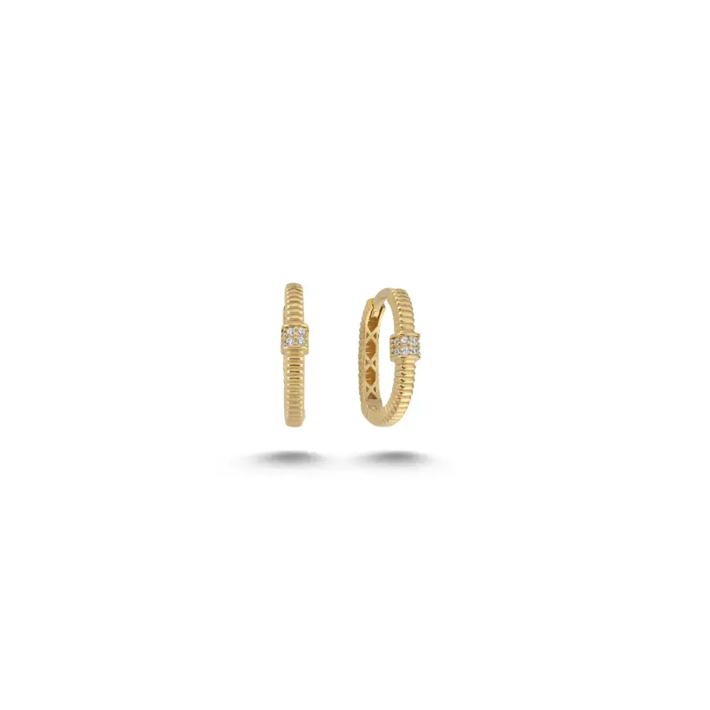 Linea Küpe, modern çizgili formu ve zarif taş dokunuşuyla sade şıklığın temsilcisidir. 14 ayar sarı altından üretilmiş olup, 2.29 gram ağırlığındadır. Üzerindeki yatay çizgi detayları ve merkezdeki taşlı geçiş, tasarıma özgün bir denge kazandırır. Hem günlük kullanıma uygun hem de zarif davet kombinlerine uyum sağlar.