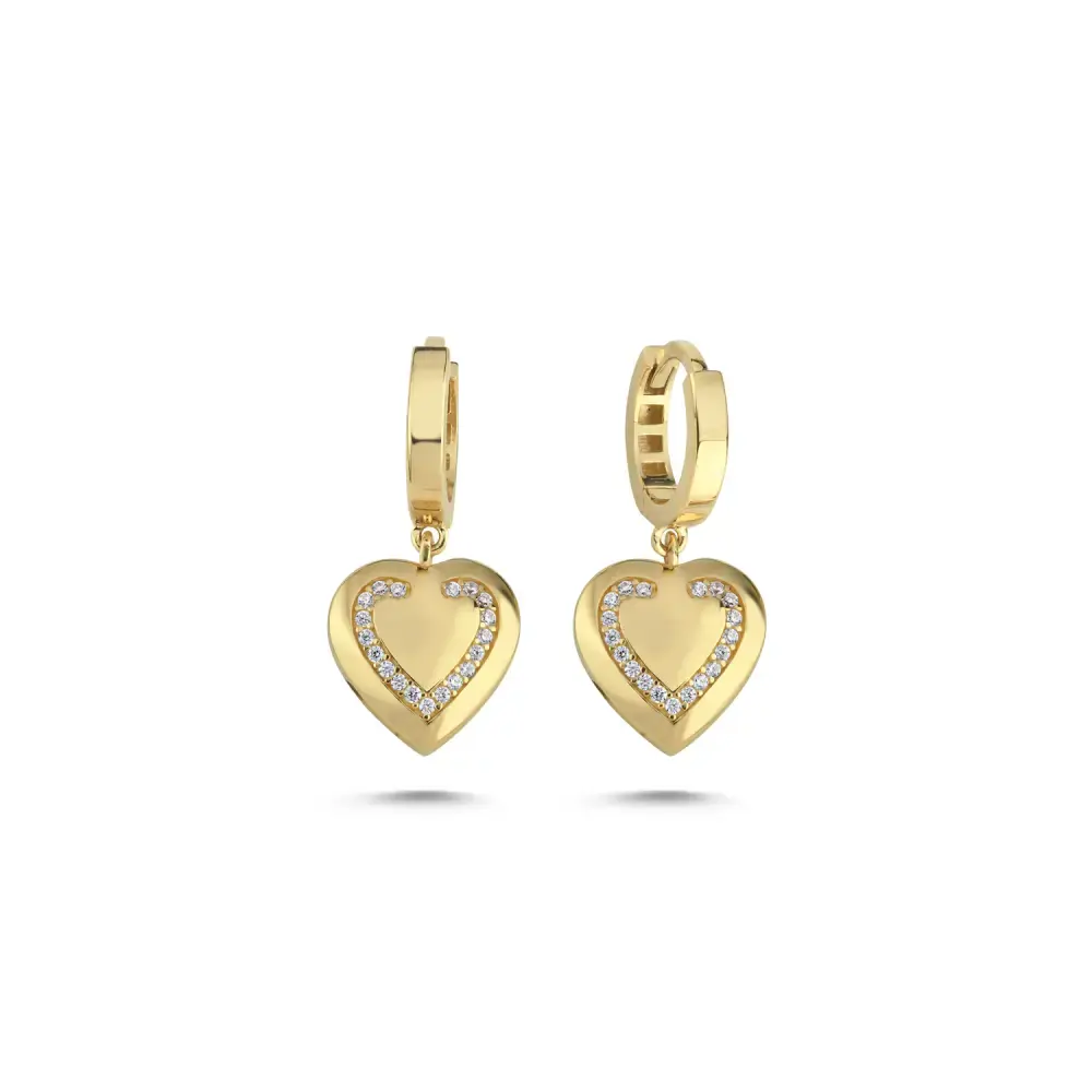 Kalp formunun iç kısmını çevreleyen taş detayları, tasarıma romantik bir parıltı kazandırır.