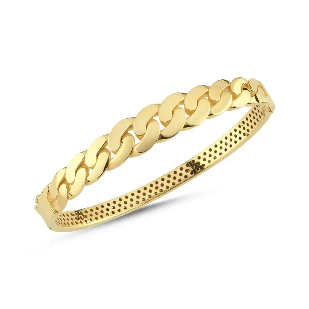 Klasik zincir formuyla güç ve zarafeti bir araya getiren Lorven Kelepçe, 14 ayar sarı altından üretilmiş olup 10.97 gram ağırlığındadır. Net çizgileriyle dikkat çeker, modern stillere güçlü bir dokunuş katar.