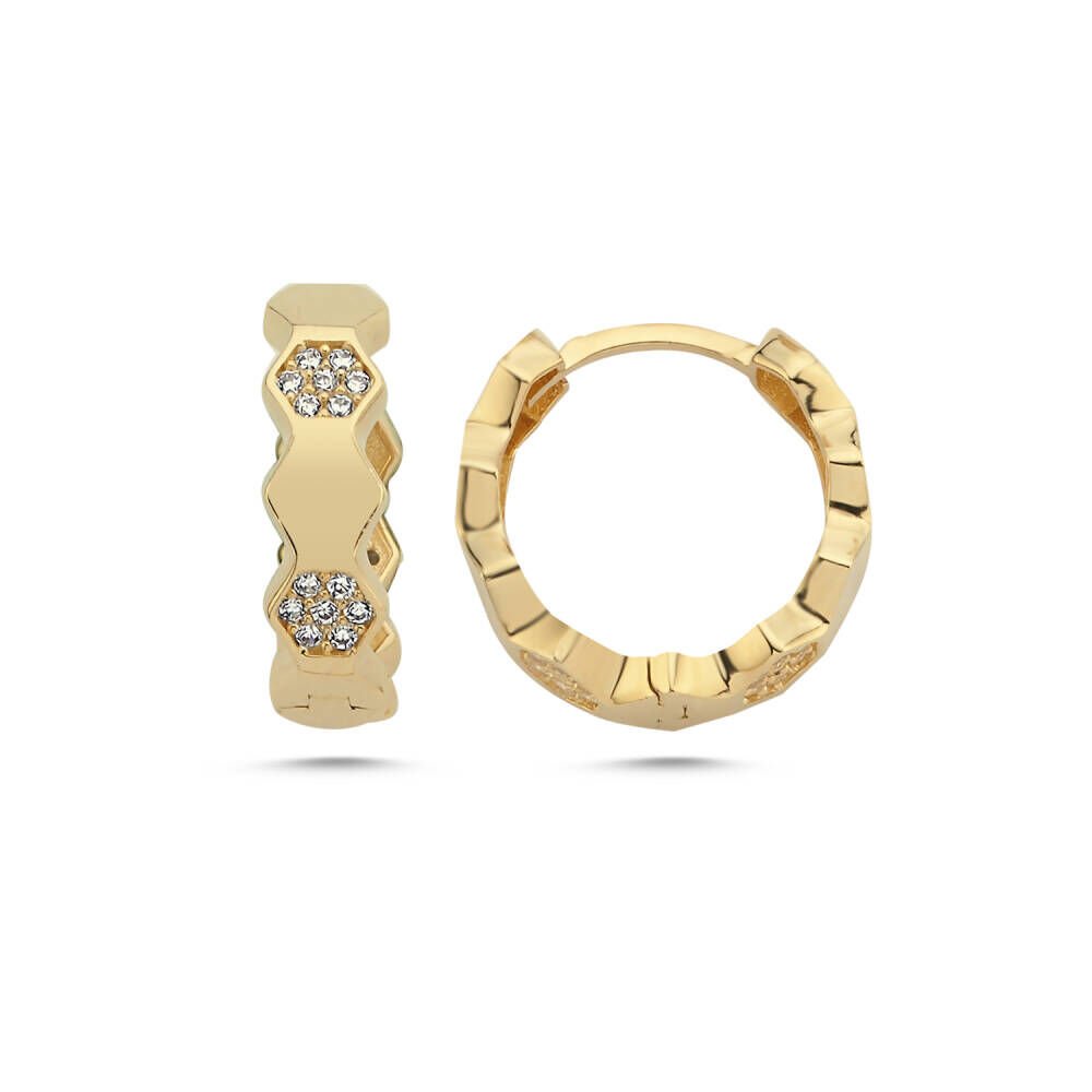 Mireta Küpe, klasik halka formunu geometrik kıvrımlar ve ışıltılı taş detaylarıyla yeniden yorumluyor. 14 ayar sarı altından üretilmiştir, 3.22 gram ağırlığındadır. Gündelik stilinize zarafet ve hareket katar.