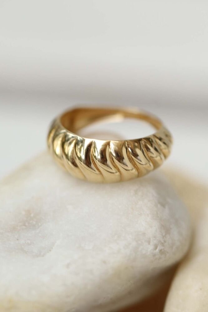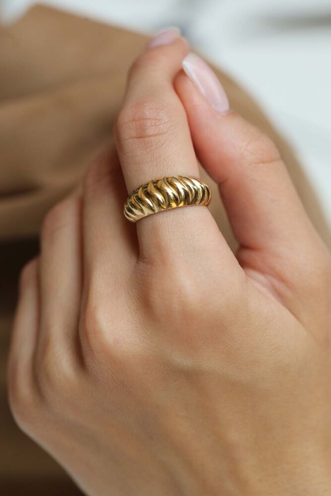 Altının kusursuz parlaklığıyla öne çıkan Mireva Yüzük, burgulu formu sayesinde modern ve güçlü bir şıklık sunar. 1,54 gram 14 ayar altından üretilen bu özel tasarım, günlük stilinize zarif bir dokunuş katar.