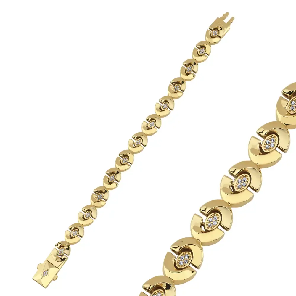 Yuvarlak hatlı halkaların merkezinde yer alan parlak taşlar, Orelis bilekliğe göz alıcı bir derinlik ve hareket kazandırıyor. 14 ayar sarı altınla tasarlanmış olan model 13.33 gram ağırlığındadır. Şıklığı detaylarda arayanlar için modern bir yorum sunan zarif bir seçkidir.