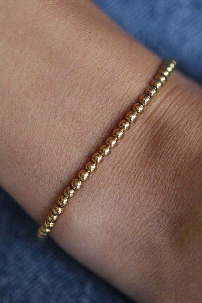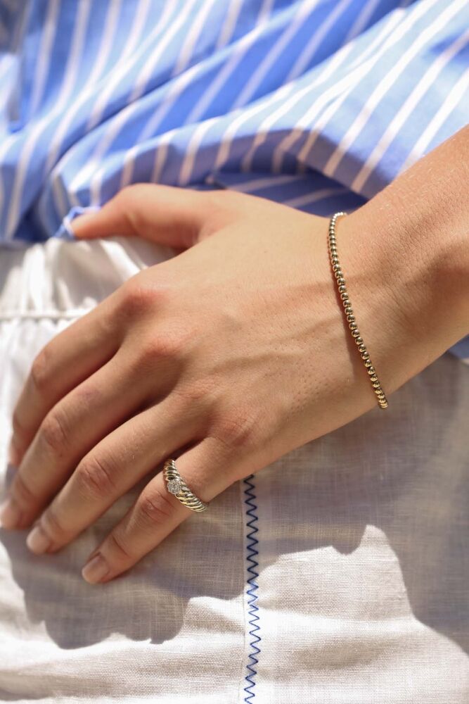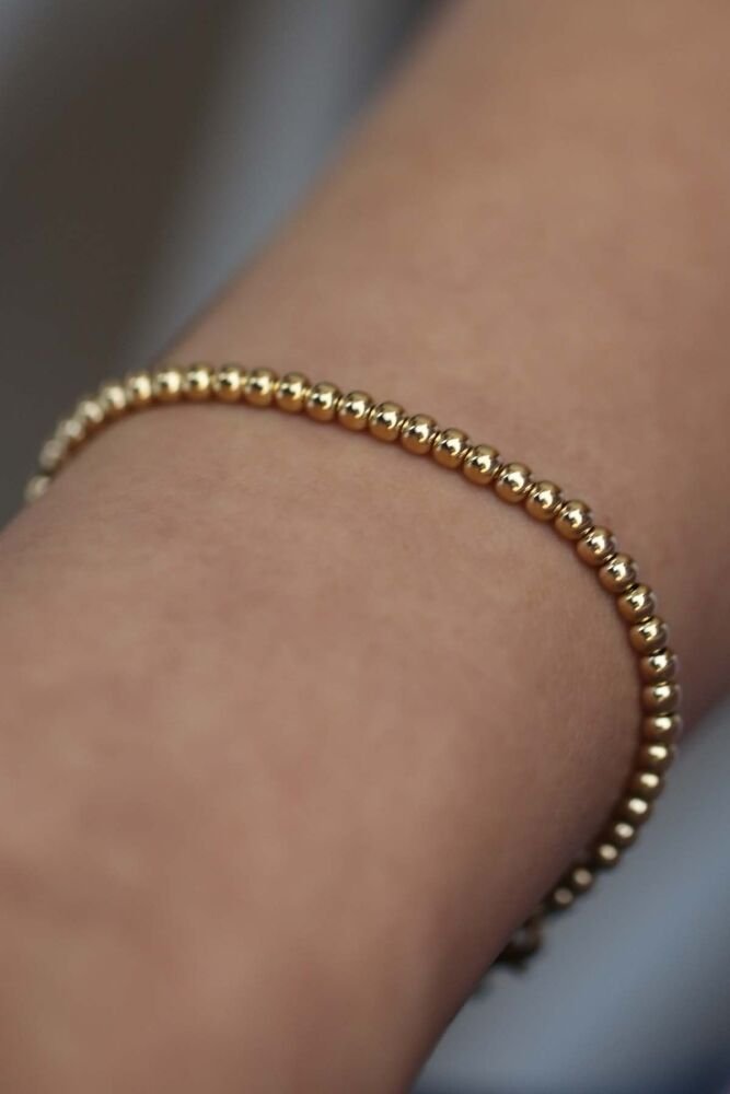 5,15 gram 14 ayar altın ile tasarlanan Orna Bileklik, yuvarlak formlu zarif halkalarıyla minimal ve şık bir görünüm sunar. Günlük kullanımdan özel davetlere kadar her stile uyum sağlayan zamansız bir parçadır.
