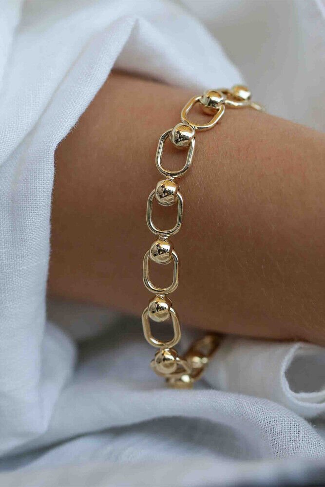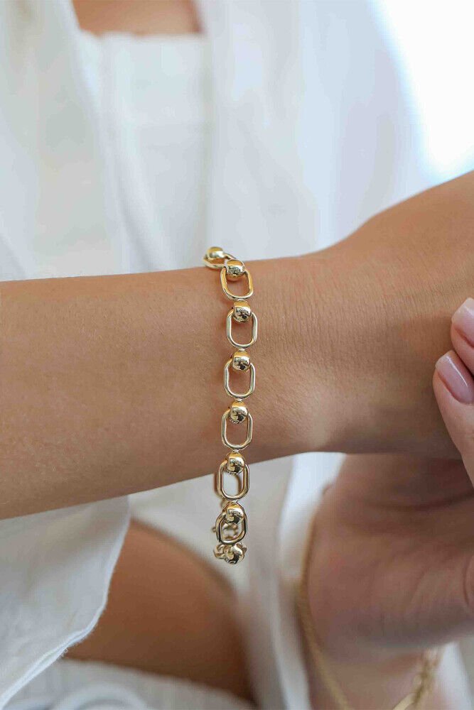 Yuvarlak hatlı zarif halkaların bir araya geldiği Seren bileklik, yalınlığıyla dikkat çekerken altının sıcak ışıltısını nazikçe yansıtır. 14 ayar sarı altından üretilmiş olan model 7.72 gram ağırlığındadır. Günlük stilinize sade ve zarif bir dokunuş katmak isteyenler için şık bir tamamlayıcıdır.