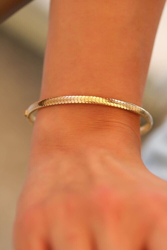 7,86 gram ağırlığında ve 14 ayar sarı altından üretilen Seta Kelepçe, adını aldığı ipeksi dokusuyla teninizde pürüzsüz bir his bırakır. Altının en akışkan ve parlak halini yansıtan bu tasarım, modern silüetiyle bileğinizde kesintisiz bir ışıltı çemberi oluşturur.