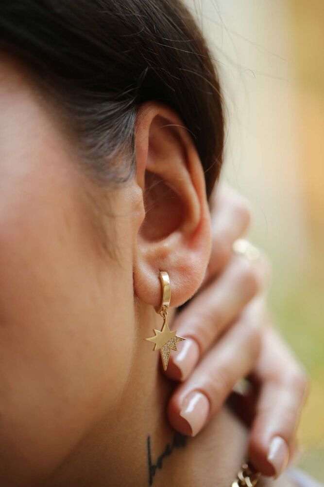 3,03 gram 14 ayar altın ile tasarlanan Siri Küpe, yıldız formundaki zarif sallantılı detayıyla gökyüzünün ışıltısını yansıtır. Modern ve şık tasarımı sayesinde hem günlük kullanıma hem de özel davetlere uyum sağlar.