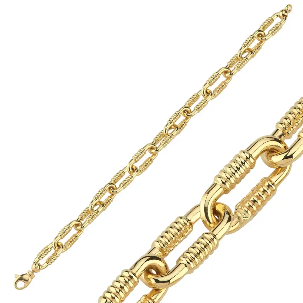 Kıvrımlı hatlarıyla hareketli bir görünüm sunan Spiral Bileklik, 14 ayar sarı altınla üretilmiştir. 8,00 gram ağırlığındaki bu şık model, modern detaylarıyla stilinize dinamizm katar.