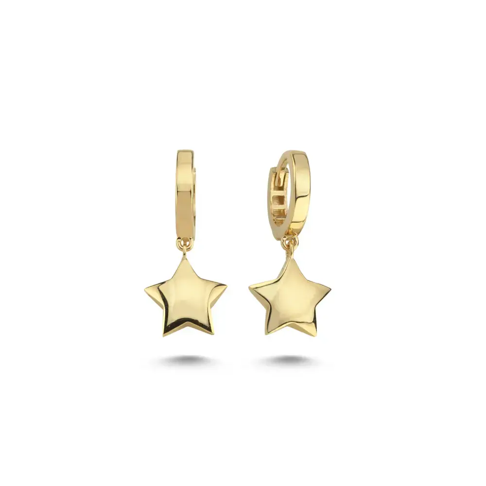 Gökyüzünün zarafetini stilinize taşıyan Stella Küpe, 14 ayar sarı altından üretilmiştir. 2.56 gram ağırlığındaki bu tasarım, sallantılı yıldız figürüyle hareketli ve dikkat çekici bir duruş sunar. Günlük kullanımda fark yaratmak isteyenler için zarif bir tercih.