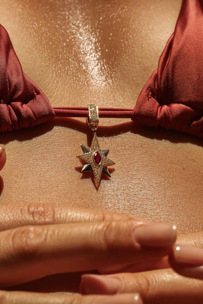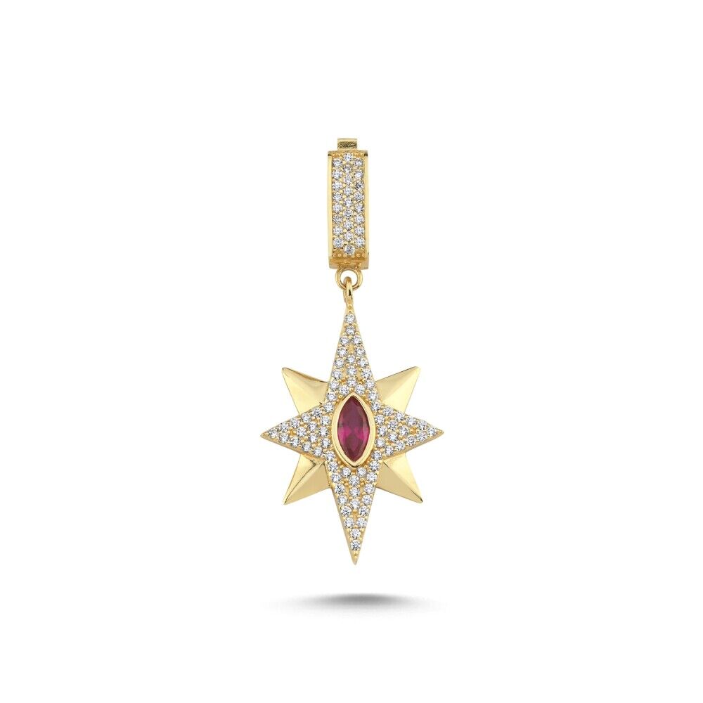 14 ayar sarı altından üretilen, 3,02 gram ağırlığındaki Stella Rubis Charm; sekiz köşeli yıldız formu ve merkezindeki kırmızı taş detayıyla dikkat çekiyor. Zarif işçiliği ve ışıltılı tasarımıyla hem tek başına hem de farklı kombinlerde şıklığınıza değer katacak bir aksesuar.