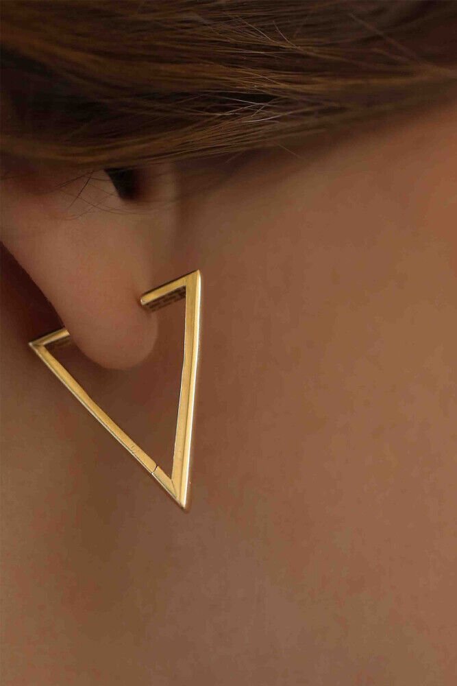 14 ayar sarı altından üretilen ve 3.75 gram ağırlığa sahip Üçgen küpe, modern tasarımıyla dikkat çeker. Üçgen formu ve sade yapısıyla çağdaş stilin simgesi olan bu parça, şehirli ve iddialı duruşunu zarif bir dokunuşla tamamlar.