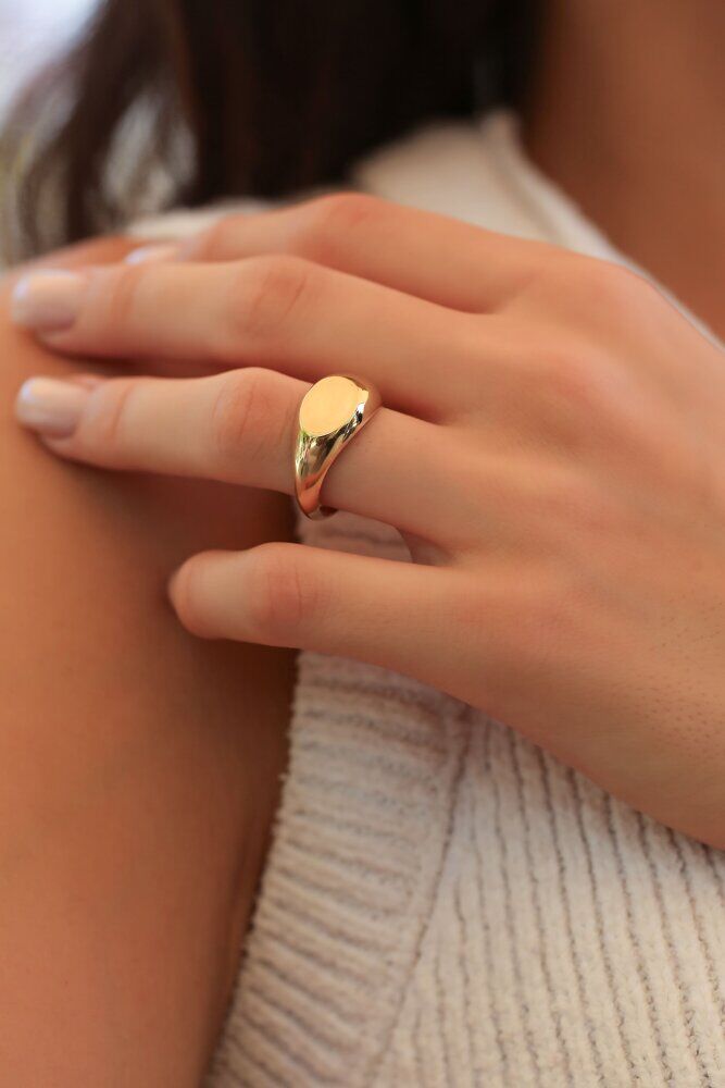 14 ayar sarı altından üretilen Vero yüzük, 2,03 gram ağırlığındadır. Oval üst yüzeyi ve yumuşak geçişleriyle elde net ama sakin bir duruş sergiler. Günlük kullanıma uygundur; tek başına kullanıldığında yalın bir ifade oluşturur, farklı yüzüklerle birlikte kullanıldığında görünümü bozmadan eşlik eder.