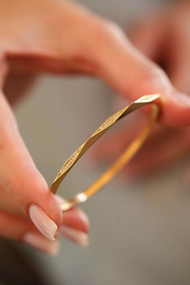 6,03 gram ağırlığında ve 14 ayar sarı altından üretilen Vertex Kelepçe, modern mücevher sanatının keskin ve akışkan hatlarını bir araya getiriyor. Burgu detayıyla hayat bulan bu tasarım, özel günlerde iddialı bir duruş sergilerken günlük şıklığınıza da prestijli bir ışıltı katar.