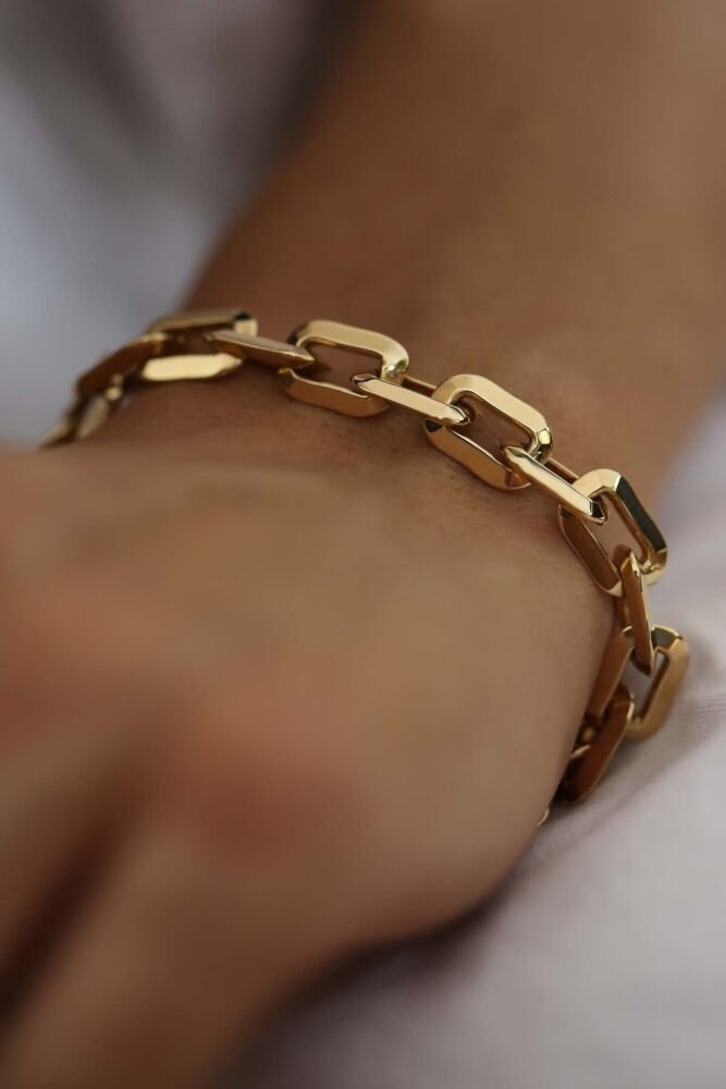 8,90 gram 14 ayar altın ile tasarlanan Viora Bileklik, modern zincir formu ve güçlü halkalarıyla dikkat çeker. Zamansız şıklığıyla günlük kombinlerden özel davetlere kadar her stile uyum sağlar.