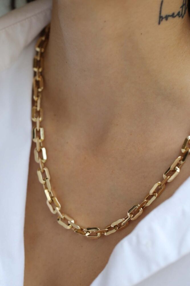 20,97 gram 14 ayar altın ile tasarlanan Viora Kolye, modern zincir halkalarıyla güçlü ve zarif bir görünüm sunar. Tek başına dikkat çeken bir parça olmasının yanı sıra Viora Bileklik ile mükemmel bir uyum yakalayarak şıklığınızı tamamlar.