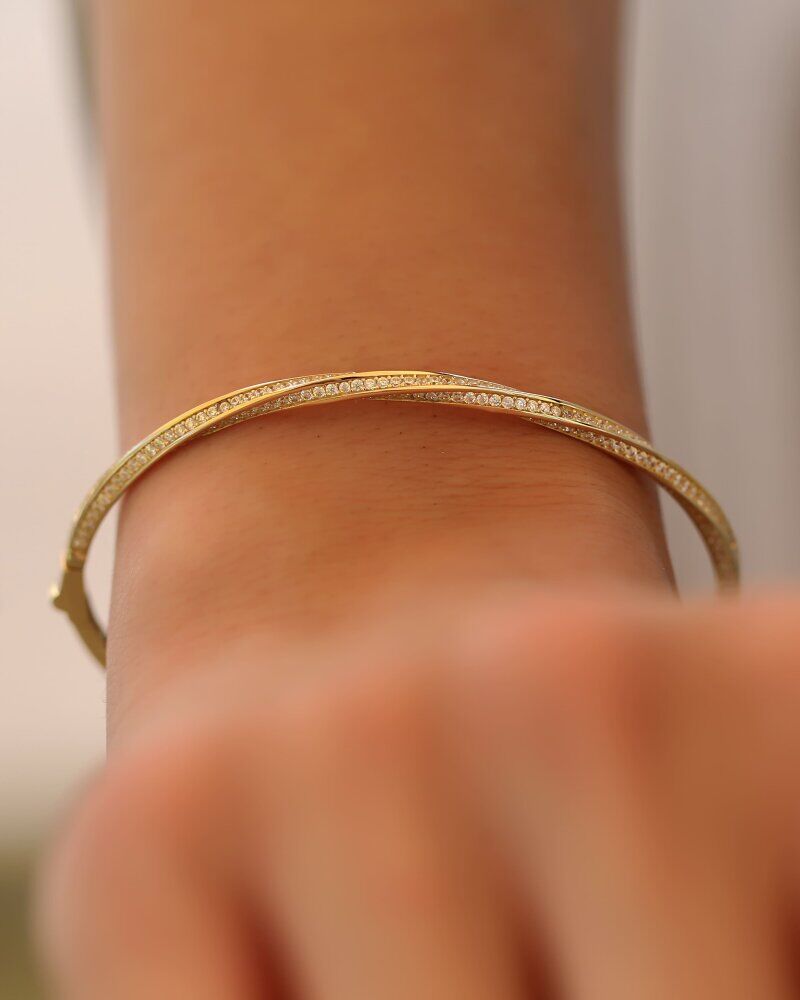 5,53 gram ağırlığında ve 14 ayar sarı altından üretilen Voluta Kelepçe, geometrik bir estetikle pırıltılı taşların dansını temsil eder. Kendi etrafında dönen narin yapısı sayesinde ışığı her açıdan farklı bir derinlikle kırarak, stilinize prestijli ve feminen bir dokunuş katar.