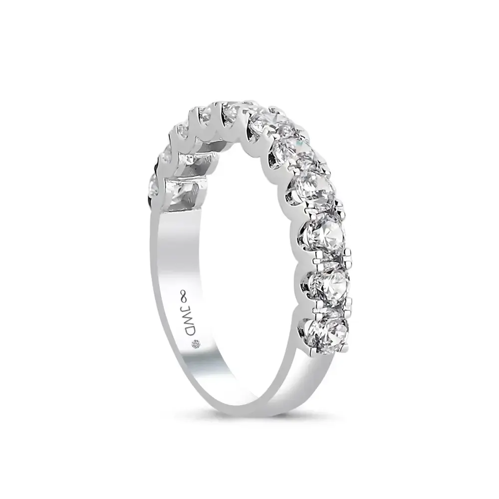 Parlak taşlarıyla dikkat çeken Yarımtur Yüzük, beyaz altın rengiyle zarif ve modern bir görünüm