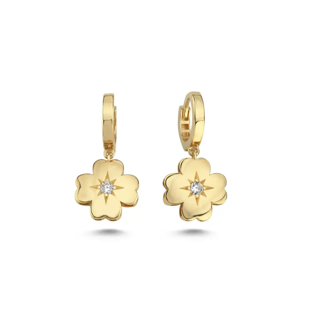 Şansın sembolü yonca ile yıldızın ışıltısını bir araya getiren Yonara Küpe, 3.71 gram 14 ayar sarı altından üretilmiştir. Merkezde yer alan yıldız kesimli taş detayıyla zarafetin en parlak halini yansıtır. Günlük kullanıma da özel anlara da uyum sağlayan bu tasarım, stilinize zarif bir anlam katar.
